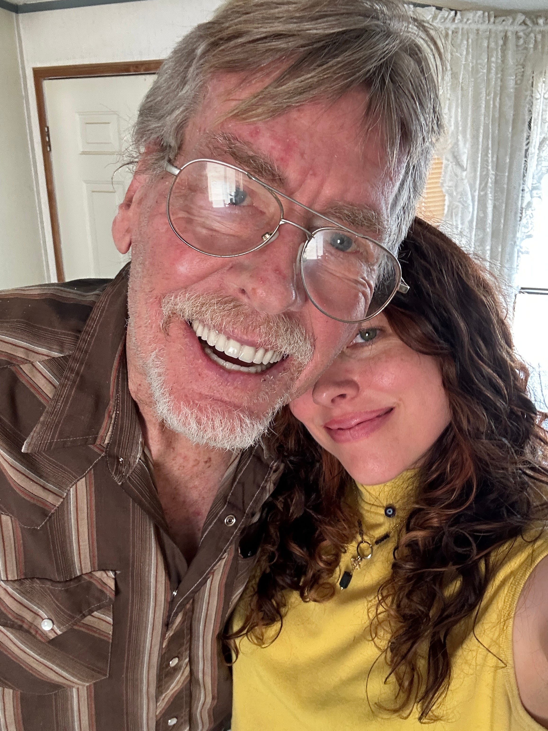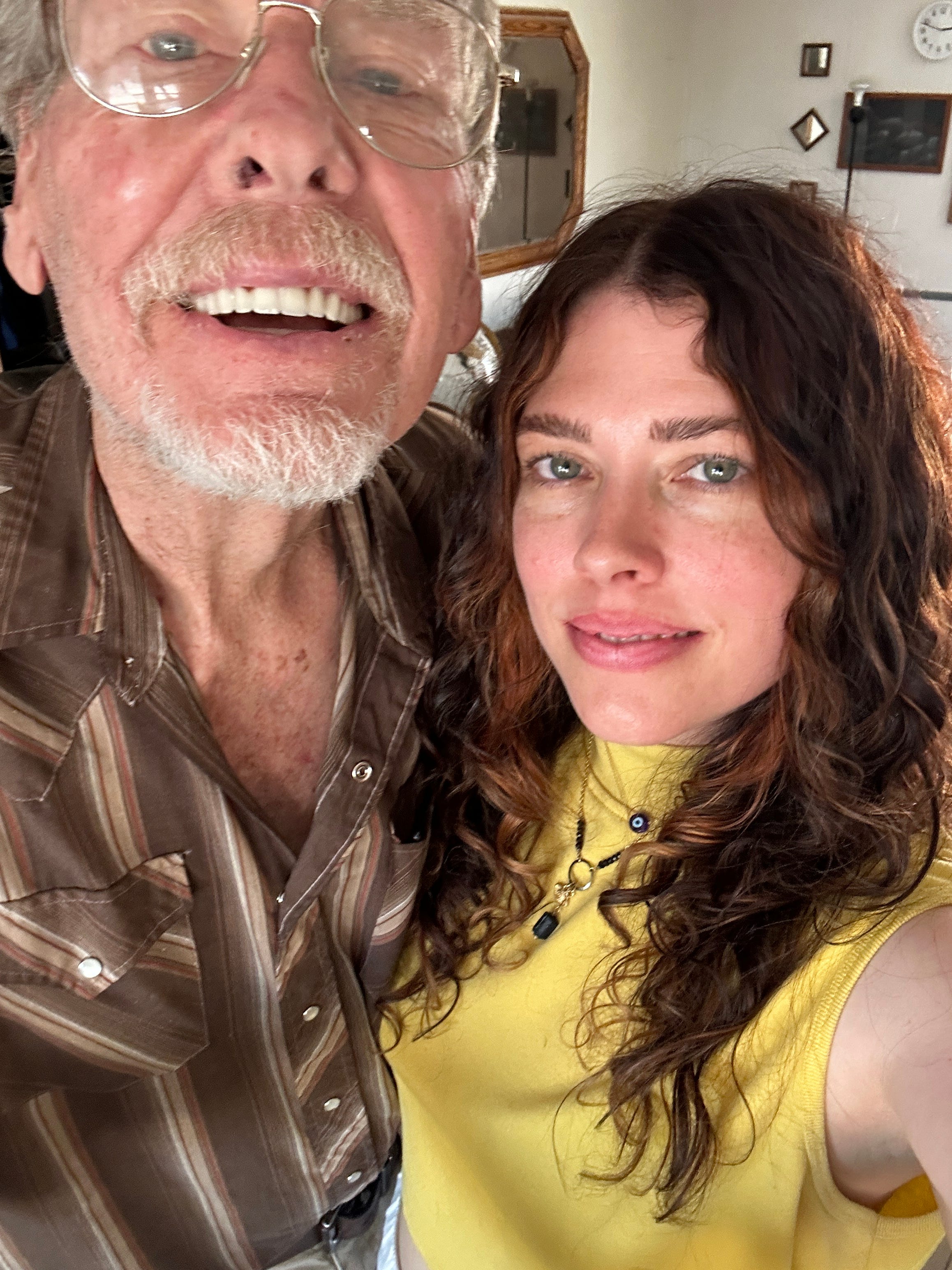 When I hug him all I feel are his shoulder blades, emphasis on blades. His body is hard and sharp and he doesn't reciprocate hugs anymore - too strenuous a task. There isn't a single ounce of fat on his entire body. He takes 6 inch steps and still talks shit if an elderly person walks by him hunched over. He's healthy because he doesn't hunch over. He barely eats, but his fridge is full of cake and cookies. He says he has been feeling "weak" the last few weeks since he started to fall. His legs will give out now and he'll go down and have to stay down until they work again. He is not going to go to the doctor or accepting any help with this, of course. Some days he’ll say he is going to get help, let the doctors test him, maybe even go live in a care facility with his sister in Coeur d'Alene and my stepmom and I have shared an elated, “FINALLY!!” over this. But we've quickly learned that acknowledgment of vulnerability means he's in a dementia spell and when he snaps out of it, he goes back to, “Oh no, no no, I'm just fine.” For his legs giving out, he has started taking creatine. He thinks that will do it. He did have to go to the VA to get stitches from the last fall and they told him they want to run some tests but last weekend he explained to me why he is not going to allow that, as if I needed the explanation again after all this time. The current one he’s using is that "the last time he was in the hospital, he was there for three days." In his mind, this is an absurd amount of time and evidence that the medical field doesn’t respect him or his time - the time he would rather be spending alone, sitting in a chair pulled up to his sliding glass door, staring at the desert in silence for days, weeks.